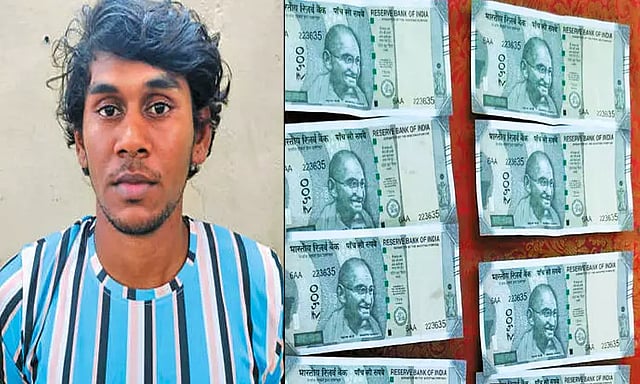 விசாரணையில் அவர், தூத்துக்குடியை சேர்ந்த அய்யப்பராஜ் (வயது 23) என்பதும், சினிமா துறையில் வேலை செய்து வருவதும், இதற்காக சென்னை விருகம்பாக்கம், அருணாசலம் சாலையில் உள்ள வாடகை வீட்டில் வசித்து வருவதும் தெரிந்தது. அவரிடம் இருந்த போலி ரூபாய் நோட்டுகள், சினிமா படப்பிடிப்பில் பயன்படுத்தப்படுவதும் தெரியவந்தது. சினிமா படப்பிடிப்புக்காக ஒரே சீரியல் எண்ணில் போலியாக 500 ரூபாய் நோட்டுகளை அச்சடித்து, "சினிமா படப்பிடிப்பு பயன்பாட்டுக்கு மட்டும்" எனவும் அந்த ரூபாய் நோட்டில் அச்சிடப்பட்டு இருந்தது.