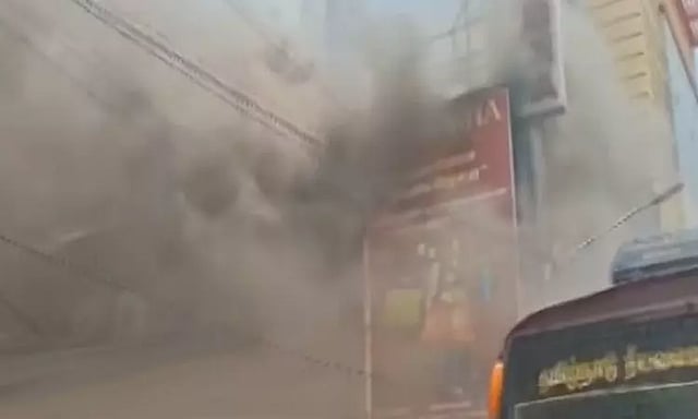 சென்னை தி.நகர் ரங்கநாதன் தெருவில் உள்ள பிரபல துணிக்கடையில் பயங்கர தீ விபத்து ஏற்பட்டுள்ளது. தீ விபத்தை அடுத்து அப்பகுதியில் கரும்புகையாக காட்சி அளிக்கிறது. தீ விபத்து குறித்து தகவல் அறிந்ததும் உடனடியாக விரைந்து வந்த தீ அணைப்பு படையினர் தீ -யை அணைக்கும் பணியில் ஈடுபட்டுள்ளனர்.