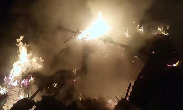 புதுப்பேட்டை அடுத்துள்ள சிறுவத்தூர் கிராமத்தை சேர்ந்தவர் சங்கர் மகன் ரவிச்சந்திரன் (வயது 25). நேற்று முன்தினம் நள்ளிரவில் இவருடைய கூரை வீடு திடீரென தீப்பற்றி எரிய தொடங்கியது. அப்போது காற்று பலமாக வீசியதால், அருகில் உள்ள கோவிந்தராஜ் மனைவி மங்கலட்சுமி (65), கோவிந்தன் மனைவி முத்துலட்சுமி ஆகியோரின் வீடுகளுக்கும் தீ பரவியது. இதனால் வீட்டில் இருந்தவர்கள் அலறியடித்துக்கொண்டு வெளியே ஓடி வந்தனர். பின்னர் அக்கம்பக்கத்தினர் உதவியுடன் தீயை அணைக்க முயன்றனர். இருப்பினும் அவர்களால் முடியவில்லை. இதற்கிடையே இதுபற்றி தகவல் அறிந்த பண்ருட்டி தீயணைப்பு நிலைய வீரர்கள் சம்பவ இடத்துக்கு விரைந்து வந்து தண்ணீரை பீய்ச்சியடித்து தீயை அணைத்தனர். இருப்பினும் 3 வீடுகளிலும் இருந்த பொருட்கள் எரிந்து சாம்பலாகின. இதன் சேதமதிப்பு ரூ.5 லட்சம் இருக்கும் என்று கூறப்படுகிறது.