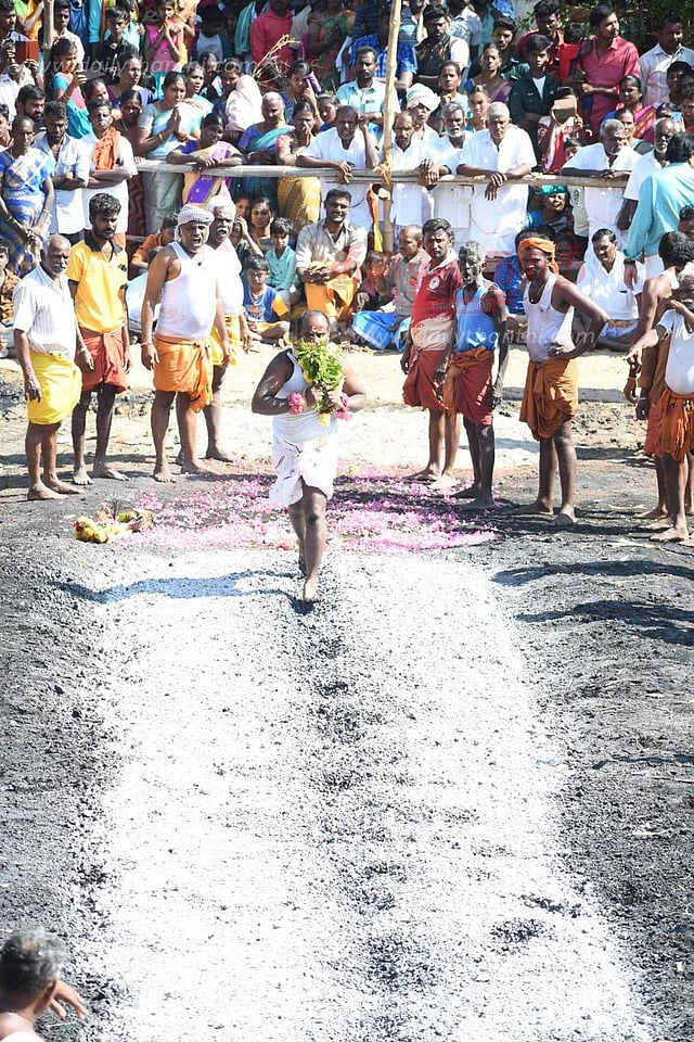 தேவூர் அருகே அரசிராமணி குள்ளம்பட்டி ஏரிக்கரை பகுதியில் பத்ரகாளியம்மன் கோவில் மாசி திருவிழா கடந்த மாதம் 17-ந் தேதி பூச்சாட்டுதலுடன் தொடங்கியது. இதையடுத்து நாள்தோறும் அம்மனுக்கு சிறப்பு அபிஷேகம், அலங்காரம் மற்றும் பூஜைகள் நடைபெற்று வந்தது. நேற்று பக்தர்கள் காவிரி ஆற்றில் புனித நீராடி கோவிலுக்கு வந்தனர். பின்னர் கோவில் முன்பு அமைக்கப்பட்ட குண்டத்தில் முதலில் பூசாரி பூங்கரகத்துடன் தீ மிதித்து நேர்த்திக்கடனை செலுத்தினார். தொடர்ந்து பக்தர்கள் ஒருவர் பின் ஒருவராக தீ மிதித்து நேர்த்திக்கடன் செலுத்தினர். மேலும் இந்த தீ மிதி விழாவில் எதிர்பாராத விதமாக திடீரென ஒருவர் குண்டத்தில் தவறி விழுந்தார். உடனே அருகில் இருந்த விழாக்குழுவினர் அவரை உடனே தூக்கி விட்டதால் அவர் எவ்வித காயமும் இன்றி தப்பினார்.