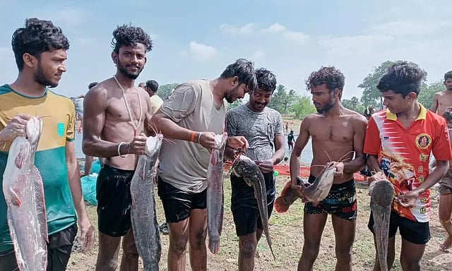 வாத்தலை அருகே நெய்வேலி கிராமத்தில் சுமார் 145 ஏக்கர் பரப்பளவில் நெய்வேலி ஏரி அமைந்துள்ளது. இந்த ஏரிக்கு மழைக்காலங்களில் கொல்லிமலையில் இருந்து திருத்தலையூர் ஏரி வழியாக நீர்வரத்து வந்தடையும். ஏரியில் தண்ணீர் வற்றும் தருவாயில் அக்கம் பக்கத்தில் உள்ள 20-க்கும் மேற்பட்ட கிராமங்கள் ஒன்றிணைந்து மீன்பிடி திருவிழா நடத்துவது வழக்கம். அதன்படி நெய்வேலி ஏரியில் நேற்று மீன்பிடி திருவிழா நடைபெற்றது. கிராம தெய்வமான பூவாயி அம்மனை வழிபட்டதை தொடர்ந்து பொதுமக்கள் மீன் பிடிக்கத் தொடங்கினர். உற்சாகத்துடன் ஏரியில் இறங்கிய பொதுமக்கள் சுருக்குமடி வலை, மிதவை இழு வலை, ஓடு கயிறு வலை மற்றும் குத்தீட்டி உள்ளிட்டவைகளை பயன்படுத்தி போட்டி போட்டு மீன்பிடித்தனர். இதில் விரால், கெண்டை, ஜிலேபி உள்பட பல்வேறு வகையான மீன்கள் வலையில் சிக்கியது. மேலும் 5 முதல் 8 கிலோ அளவுள்ள பெரிய மீன்களும் பொதுமக்கள் வலையில் சிக்கியது.