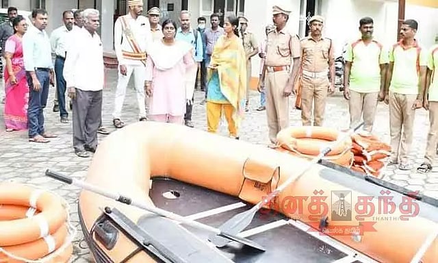 மீட்பு பணிக்காக தீயணைப்பு துறையினர் மற்றும் தமிழ்நாடு பேரிடர் மீட்பு குழுவினர், படகுகளுடன் தயார் நிலையில் உள்ளனர்.