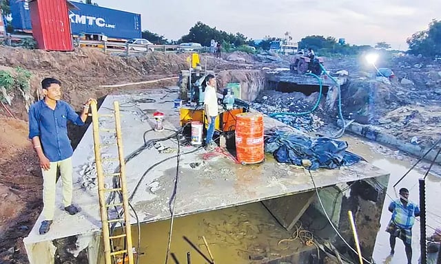 ரயில்வே துறையில் மட்டுமே சாத்தியமான இந்த பணிகள், தற்போது தமிழகத்தில் முதல் முறையாக தாம்பரம்-மதுரவாயல் நெடுஞ்சாலையை சேதப்படுத்தாமல் நடந்து வருகிறது. இதனால் சாலைக்கும், போக்குவரத்துக்கும் எந்த பாதிப்பும் வராமல் பணி நடைபெற்று வருவதாக அதிகாரிகள் தெரிவித்தனர்.