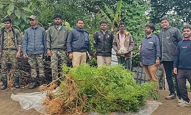 சம்மந்தப்பட்ட நபரின் வீட்டிற்கு வனத்துறையினர் மற்றும் காவல்துறையினர் குழுவாகச் சென்று சோதனை செய்துள்ளனர். வீட்டின் பின்புறம் கஞ்சா செடிகளை வளர்த்து வந்ததைக் கண்டறிந்துள்ளனர்.