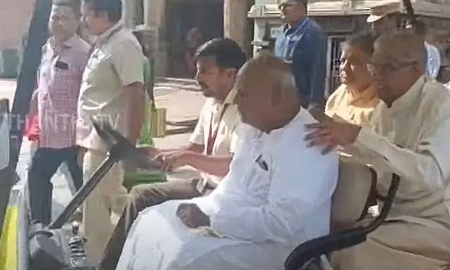திருச்சி ஸ்ரீரங்கம் ரங்கநாதசுவாமி கோவிலில் சாமி தரிசனம் செய்வதற்காக முன்னாள் பிரதமர் தேவகவுடா பெங்களூருவில் இருந்து தனி விமானம் மூலமாக வந்தார். கோவிலில் உள்ள மூலவர் பெரியபெருமாள் சன்னதி, தாயார் சன்னதி உள்ளிட்ட சன்னதிகளுக்கு பேட்டரி கார்கள் மூலமாக சென்று தரிசனம் செய்தார்.