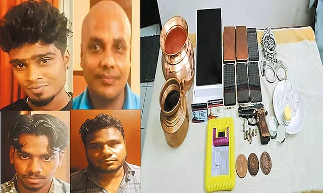 சென்னையில் இவர்கள் கோவில் கோபுர கலசத்தை திருட இருந்தார்களா? அல்லது வேறு ஏதேனும் இதுபோல் மோசடியில் ஈடுபட இருந்தார்களா? என பல்வேறு கோணங்களிலும் போலீசார் விசாரித்து வருகின்றனர்.