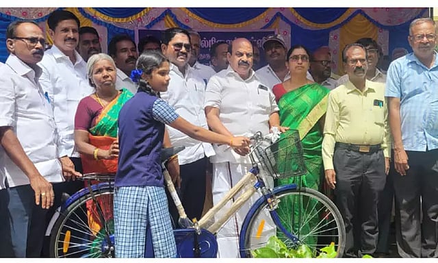 ஆம்பூர் அடுத்த அரங்கல்துருகம் பகுதியில் உள்ள அரசு மேல்நிலைப் பள்ளியில் விலையில்லா சைக்கிள் வழங்கும் விழா நடைபெற்றது. சிறப்பு அழைப்பாளராக ஆம்பூர் தொகுதி எம்.எல்.ஏ. வில்வநாதன், மாதனூர் ஒன்றியக்குழு தலைவர் சுரேஷ்குமார் ஆகியோர் கலந்து கொண்டு 49 மாணவ- மாணவிகளுக்கு விலையில்லா சைக்கிள்களை வழங்கினார்கள்.
