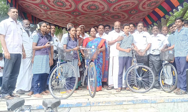 மயிலம் ஒன்றியம் பெரியதச்சூர் அரசு மேல்நிலைப்பள்ளியில் 12-ம் வகுப்பு மாணவ-மாணவிகளுக்கு தமிழக அரசின் விலையில்லா சைக்கிள் வழங்கும் நிழ்ச்சி நடைபெற்றது. இதற்கு மயிலம் ஒன்றியக்குழு தலைவர் யோகேஸ்வரி மணிமாறன் தலைமை தாங்கி 122 மாணவ-மாணவிகளுக்கு தமிழக அரசின் விலையில்லா சைக்கிள்களை வழங்கி பேசினார். இதைத் தொடர்ந்து பெரியதச்சூர், தொடக்கப்பள்ளி குழந்தைகளுக்கு நோட்டுப்புத்தகம், பேனா, பென்சில் மற்று இனிப்பு ஆகியவற்றை வழங்கினார்.