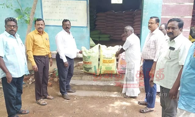 மயிலாடுதுறை மாவட்டம், மணல்மேட்டில் உள்ள தொடக்க வேளாண்மை கூட்டுறவு சங்கத்தில் குறுவை தொகுப்பு திட்டத்தின் கீழ் விவசாயிகளுக்கு இலவச உரம் வழங்கும் நிகழ்ச்சி நடைபெற்றது. நிகழ்ச்சிக்கு மயிலாடுதுறை வேளாண்மைத்துறை இணை இயக்குனர் சேகர் தலைமை தாங்கினார். இதில் முடிகண்டநல்லூர், வக்காரமாரி ஆகிய பகுதிகளை சேர்ந்த விவசாயிகளுக்கு இலவசமாக உரங்களை, இணை இயக்குனர் வழங்கினார். நிகழ்ச்சியில் குறுவை தொகுப்பு திட்டத்தின் கீழ் பயன்பெறும் விவசாயிகள், அவர்களது செல்போனுக்கு வேளாண்மைத்துறையில் இருந்து கடவுச்சொல் வந்த உடன் தொடக்க வேளாண் கூட்டுறவு சங்கத்திற்கு சென்று இலவசமாக உரங்களை பெற்றுக்கொள்ளலாம் என்று வேளாண்மை துறையினர் கூறினர். நிகழ்ச்சியில் கூட்டுறவுத்துறை இணை இயக்குனர் தயாளவிநாயகன், அமுல்ராஜ், கூட்டுறவு துணை பதிவாளர் ராஜேந்திரன், துணை வேளாண்மை அலுவலர் பிரபாகரன், உதவி வேளாண்மை அலுவலர் மணிமாறன் ஆகியோர் உடனிருந்தனர்.