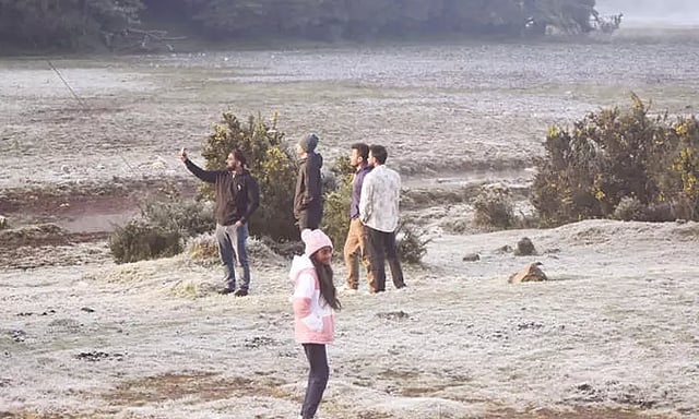 மரம், செடி, கொடி மற்றும் புற்கள் பச்சை நிறத்தில் பசுமையாக தெரிந்து வந்த நிலையில், காலை நேரங்களில் உறைபனி கொட்டி வெண்மையாக காட்சியளிக்கிறது. மேலும் சாலை, அதன் ஓரம் நிறுத்தப்பட்டு இருந்த வாகனங்கள் மீதும் பனி கொட்டி கிடக்கிறது. சூரியன் நன்றாக உதித்ததும் உறைபனி உருகியும், ஆவியாகி செல்வதும் அழகாக காட்சியளிக்கிறது. இந்த காட்சிகளை பார்வையிடவும், தலைக்குந்தா பகுதிகளில் உள்ள உறை பனியை பார்க்கவும் கடும் குளிரை பொருட்படுத்தாமல் அதிகாலை நேரத்தில் சுற்றுலா பயணிகள் அங்கு குவிந்து வருகின்றனர். உறை பனியை கையில் எடுத்து கண்டு களித்து வருகிறார்கள். இதனால் அவர்கள் குதூகலம் அடைந்துள்ளனர்.