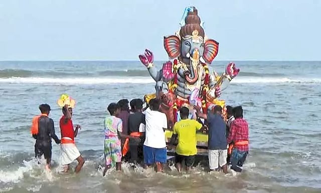 விநாயகர் சதுர்த்தி விழா கடந்த 18-ந்தேதி சிறப்பாக கொண்டாடப்பட்டது. இதையொட்டி தெருக்கள், வீடுகளில் விநாயகர் சிலைகள் வைத்து பூஜைகள் செய்யப்பட்டன. செங்கல்பட்டு மற்றும் காஞ்சீபுரம் மாவட்டத்தில் வைக்கப்பட்டுள்ள விநாயகர் சிலைகள் நேற்றும் வருகிற 24 ந்தேதி (ஞாயிற்றுகிழமை) மாமல்லபுரம் கடலில் கரைக்க போலீசார் அனுமதி வழங்கினர்.
