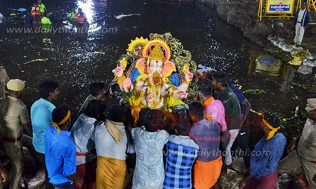 இதையொட்டி போலீஸ் கமிஷனர் லோகநாதன் தலைமையில் 1000-க்கும் மேற்பட்ட போலீசார் மாசி வீதிகள், வெளிவீதிகளில் பாதுகாப்பு பணியில் ஈடுபட்டிருந்தனர். பின்னர் சிலைகள் அனைத்தும் சிம்மக்கல் வழியாக வைகை ஆற்றின் தென்கரை பகுதிக்கு வந்தடைந்தன. அங்கு சிலைகள் அனைத்தும் பாதுகாப்பாக வைகை ஆற்றில் கரைக்கப்பட்டு பக்தர்கள் வழிபாடு நடத்தினர். இந்த நிகழ்ச்சியில் சிறப்பு விருந்தினராக இலங்கை யாழ்ப்பாணம் நாடாளுமன்ற உறுப்பினர் ஸ்ரீதரன்ஜீ, இலங்கை மட்டகளப்பு முன்னாள் நாடாளுமன்ற உறுப்பினர் சீனிதம்பி யோகேஸ்வரன், இந்து மக்கள் கட்சி மாவட்ட தலைவர் சோலை கண்ணன் உள்ளிட்ட பலர் கலந்து கொண்டனர்.