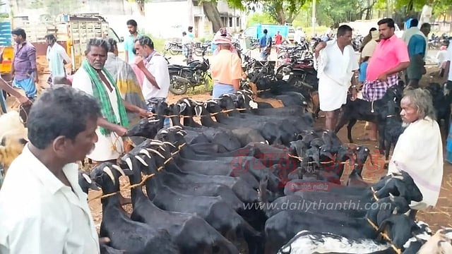 பொம்மிடி அடுத்த வடசந்தையூரில் வாரந்தோறும் வியாழக்கிழமைகளில் ஆட்டு சந்தை நடைபெறுவது வழக்கம். இங்கு தர்மபுரி, கிருஷ்ணகிரி, திருவண்ணாமலை, சேலம், உள்ளிட்ட மாவட்ட வியாபாரிகளும், உள்ளூர் விவசாயிகள் தாங்கள் வளர்க்கும் 500-க்கும் மேற்பட்ட ஆடுகளை விற்பனைக்காக கொண்டு வந்தனர். நேற்று நடைபெற்ற சந்தையில் 10 கிலோ எடை கொண்ட ஆடு 7 ஆயிரம் ரூபாய் முதல் 15 ஆயிரம் ரூபாய் வரை விலை நிர்ணயம் செய்யப்பட்டது. 100-க்கும் மேற்பட்ட ஆடுகள் விற்பனையானது. தற்போது புரட்டாசி மாதம் என்பதால் ஆடுகள் வாங்க வியாபாரிகள் பெரிய அளவில் ஆர்வம் காட்டவில்லை. இதனால் ஆடுகள் விற்பனை மந்தமாக இருந்தது. நேற்று நடைபெற்ற சந்தையில் 24 லட்சம் ரூபாய்க்கு ஆடுகள் விற்பனை நடைபெற்றதாக வியாபாரிகள் தெரிவித்தனர்