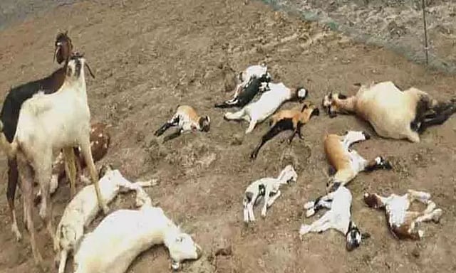 பூண்டி ஒன்றியம் மோவூர் கிராமத்தை சேர்ந்தவர் ரஜினி. இவர் 25 ஆடுகளை வைத்து மேய்த்து தனது குடும்பத்தை கவனித்து வருகிறார். நேற்று முன்தினம் மாலை வழக்கம்போல் ஆடுகளை கொட்டகையில் கட்டிவிட்டு ரஜினி தூங்க சென்றார் நேற்று காலை அவர் கொட்டகைக்கு வந்து பார்த்தபோது 8 ஆடுகள் கழுத்தில் கடிப்பட்ட காயங்களுடன் இறந்து கிடந்தன. இதைகண்டு அதிர்ச்சி அடைந்த ரஜினி கால்நடை துறைக்கு தகவல் தெரிவித்தார். சம்பவ இடத்துக்கு வந்த கால்நடை டாக்டர்கள் ஆடுகளை சோதனை செய்தனர்.