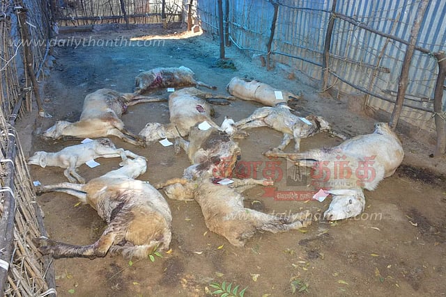 தொடர்ந்து கால்நடை மருத்துவர்கள் காயம் அடைந்த ஆடுகளுக்கு சிகிச்சை அளித்தனர். இதுகுறித்து கிருஷ்ணகிரி அணை போலீசார் விசாரணை நடத்தி வருகின்றனர்.