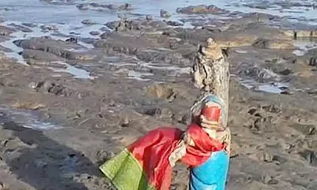 நேற்று ஞாயிற்றுக்கிழமை விடுமுறை என்பதால் கடற்கரையில் உள்ள பூங்காவை சுற்றி பார்க்க வந்தவர்ள் இந்த சிலயை ஆச்சரியத்துடன் கண்டுகளித்தனர்.