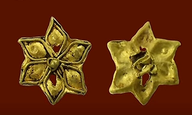 இந்த நிலையில், அகழாய்வு பணியின்போது இன்று மூன்று முக்கிய பொருட்கள் கண்டுபிடிக்கப்பட்டு உள்ளது. குறிப்பாக தங்க ஆபரணத்தை முதல் முறையாக இங்கு கண்டறிந்துள்ளனர். ஆறு இதழ்களை கொண்ட இந்த தங்க ஆபரணமானது மூக்குத்தி அல்லது தோடு வடிவில் உள்ளது.