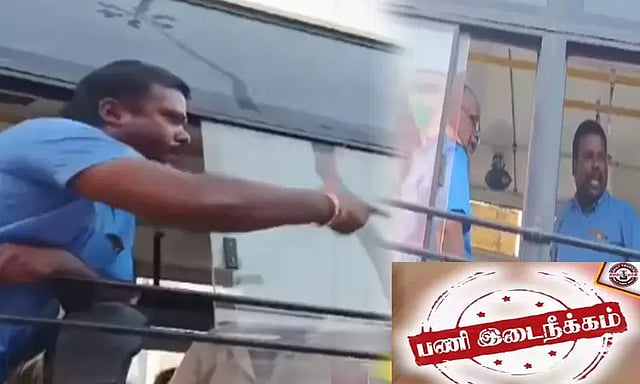 இது குறித்த வீடியோ காட்சிகள் வெளியாகி பரபரப்பை ஏற்படுத்திய நிலையில், ஓட்டுநர் மற்றும் நடத்துநரை பணியிடை நீக்கம் செய்து போக்குவரத்துத் துறை உத்தரவிட்டுள்ளது.