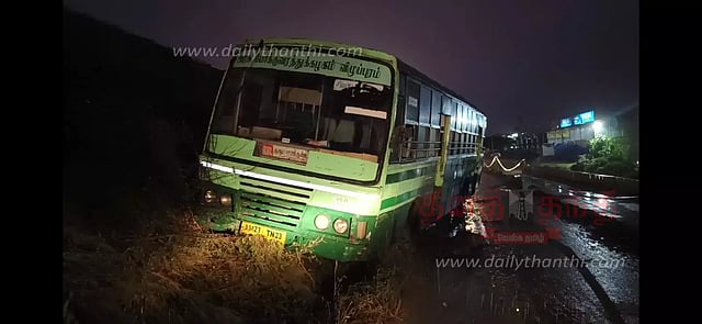 அப்போது ஏரிகோடி பகுதியில் சென்றபோது சாலையின் இடது பக்கம் தோண்டப்பட்ட கால்வாய் பள்ளத்தில் நிலை தடுமாறி இறங்க முற்பட்டபோது, டிரைவர் திடீரென வலது பக்கம் திருப்பி உள்ளார். அப்போது வலது பக்கம் இருந்த இரண்டு அடி பள்ளத்தில் சக்கரம் மாட்டிக் கொண்டது. உடனடியாக பஸ்சில் இருந்த பயணிகள் அலறி அடித்து கீழே இறங்கினர். இதில் யாருக்கும் காயம் ஏற்பட வில்லை. பின்னர் மாற்று பஸ் வரவழைக்கப்பட்டு பயணிகள் அனுப்பி வைக்கப்பட்டனர்.