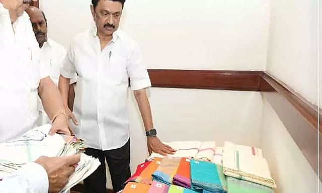 இந்த நிலையில், இந்தாண்டு பொங்கல் பண்டிகைக்கு இலவச வேட்டி, சேலை வழங்குவது தொடர்பாக முதல்-அமைச்சர் மு.க.ஸ்டாலின் இன்று ஆலோசனை நடத்தினார்.தலைமை செயலகத்தில் நடைபெறும் ஆலோசனை கூட்டத்தில் அமைச்சர்கள் ஐ.பெரியசாமி,காந்தி, சக்கரபாணி மற்றும் உயர் அதிகாரிகள் பங்கேற்றனர்.
