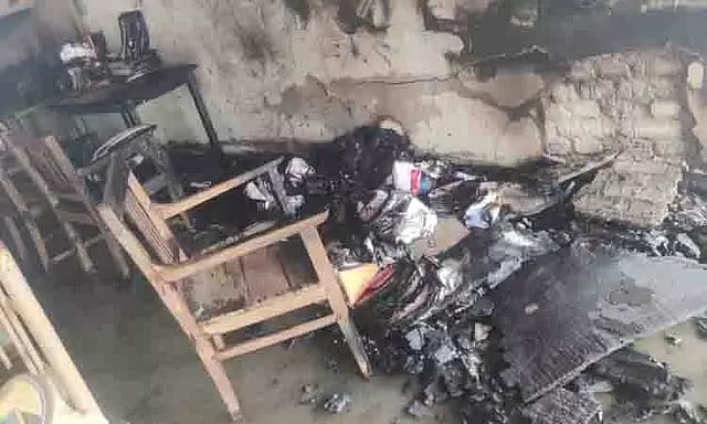 மேலும், பள்ளி வளாகத்தில் இருந்த 3 குடிநீர் குழாய்களும் உடைக்கப்பட்டு, தண்ணீர் வெளியேறிக்கொண்டிருந்தது. இந்த தீ விபத்து குறித்து பள்ளி தரப்பில் அரவக்குறிச்சி போலீஸ் நிலையத்தில் புகார் கொடுக்கப்பட்டது. அதன்பேரில் போலீசார் வழக்குப்பதிந்து, பள்ளிக்கு தீ வைத்த மர்மநபர்களை வலைவீசி தேடி வருகின்றனர். இந்த சம்பவம் நேற்று அப்பகுதியில் பெரும் பரபரப்பை ஏற்படுத்தி உள்ளது.