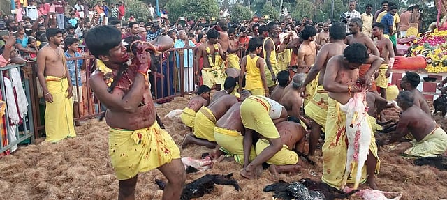 ராசிபுரத்தில் பிரசித்தி பெற்ற அங்காளபரமேஸ்வரி அம்மன் கோவில் உள்ளது. இந்த ஆண்டு சிவராத்திரி விழா கடந்த 5-ந் தேதி கொடியேற்றத்துடன் தொடங்கியது. ரிஷபவாகனம், யானை வாகனம், கிளிவாகம், புலிவாகனம் என தினசரி ஒருவாகனத்தில் சுவாமி ஊர்வலம் நடந்தது. அம்மனை சக்தி அழைத்தலும், தொடர்ந்து சாமிஊஞ்சல் ஆடுதல், பூ பந்தல், பந்தபலி இடுதல், பூ வாங்குதல் உள்ளிட்ட நிகழ்ச்சிகள் நடந்தது. பின்னர் நேற்று மாலையில் முத்துக்காளிப்பட்டி மயானத்தில் மயான கொள்ளை நிகழ்ச்சி நடந்தது. பூசாரிகள் 50 க்கும் மேற்பட்ட ஆடுகள், 20க்கும் மேற்பட்ட கோழிகளை வாயால் கடித்து பலியிட்டனர். இந்நிகழ்ச்சியில் 1000-க்கும் மேற்பட்ட பக்தர்கள் கலந்து கொண்டனர்.