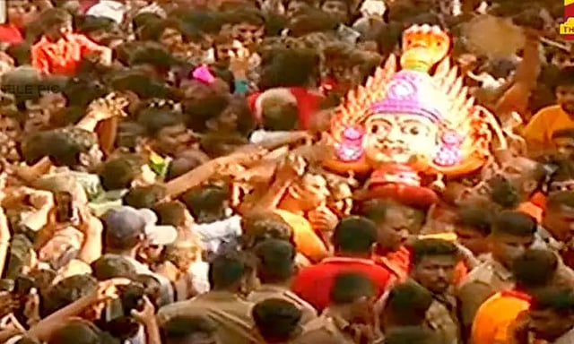 கோவிலில் அம்மன் கண் திறப்பு நிகழ்ச்சிக்கு பின்னர் பக்தர்கள் நீண்ட வரிசையில் நின்று அம்மனை தரிசனம் செய்து வருகின்றனர். சிரசு ஊர்வலம் தொடங்கிய முத்தாலம்மன் கோவிலில் இருந்து கங்கையம்மன் கோவில் சுமார் ஒரு கிலோ மீட்டர் தொலைவில் உள்ளது. காலையில் 6 மணிக்கு சிரசு ஊர்வலம் புறப்பட்டு ஒரு கிலோ மீட்டர் தொலைவை சுமார் 3 மணி நேரம் பக்தர்கள் வெள்ளத்தில் மிதந்து சென்று கோவிலை அடைந்தது. எந்த ஆண்டும் இல்லாத வகையில் வரலாறு காணாத பக்தர்கள் கூட்டம் இருந்தது. 5 லட்சம் பக்தர்கள் இன்று அம்மன் சிரசு ஊர்வலம் மற்றும் கோவிலில் அம்மனை தரிசனம் செய்தனர்.