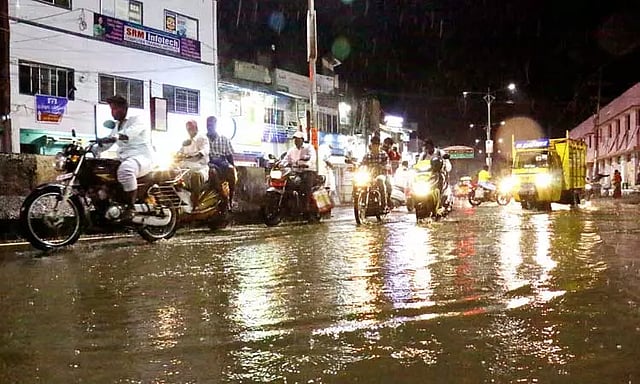 வளிமண்டல கீழடுக்கு சுழற்சி காரணமாக தமிழகம், புதுச்சேரி பகுதிக்குட்பட்ட அநேக இடங்களில் இடி-மின்னலுடன் பலத்த மழை பெய்யும் என்று சென்னை வானிலை ஆய்வு மையம் அறிவித்திருந்தது. இந்த நிலையில் நேற்று காலை முதல் மாலை வரை வெயில் சுட்டெரித்தது. மாலை 4 மணிக்குமேல் வானம் மேக மூட்டத்துடன் மப்பும் மந்தாரமாக காட்சியளித்தது. மாலை 5 மணியளவில் குளிர்ந்த காற்றுடன் லேசாக பெய்யத்தொடங்கிய மழையானது மாலை 6 மணிக்கு இடி-மின்னலுடன் பலத்த மழையாக பெய்தது. இந்த மழை இடைவிடாமல் அரை மணி நேரத்திற்கும் மேலாக கொட்டித்தீர்த்தது. அதன் பிறகும் விட்டு, விட்டு பெய்து கொண்டிருந்தது.