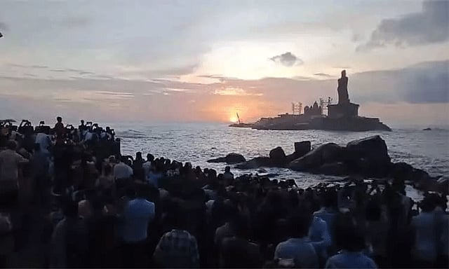 இந்தநிலையில் இன்று ஞாயிறு விடுமுறையையொட்டி காலையில் இருந்தே கன்னியாகுமரியில் ஆயிரக்கணக்கான சுற்றுலா பயணிகள் குவிந்துள்ளனர். அவர்கள் முக்கடலும் சங்கமிக்கும் திரிவேணி சங்கமம் கடற்கரை, சன்ரைஸ் பாயின்ட் போன்ற பகுதிகளில் நள்ளிரவு முதல் காத்திருந்து சூரிய உதயத்தை கண்டு ரசித்தனர்.