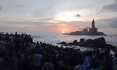 இந்தநிலையில் இன்று ஞாயிறு விடுமுறையையொட்டி காலையில் இருந்தே கன்னியாகுமரியில் ஆயிரக்கணக்கான சுற்றுலா பயணிகள் குவிந்துள்ளனர். அவர்கள் முக்கடலும் சங்கமிக்கும் திரிவேணி சங்கமம் கடற்கரை, சன்ரைஸ் பாயின்ட் போன்ற பகுதிகளில் நள்ளிரவு முதல் காத்திருந்து சூரிய உதயத்தை கண்டு ரசித்தனர்.