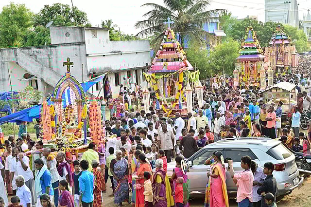 ஆலங்குடி அருகே அரசடிபட்டியில் புனித வியாகுல அன்னை ஆலயம் உள்ளது. இந்த ஆலயத்தில் கடந்த 19-ந் தேதி ஆலய பங்குத் தந்தை அமுல் வில்லியம் கூட்டுப்பாடல் திருப்பலி பூஜையுடன் கொடியேற்றம் நடைபெற்றது. இதனை தொடர்ந்து தினந்தோறும் கிராம பொதுமக்களால் காலை முதல் மாலை வரை தேர்பவனி மற்றும் நவநாள் திருப்பலி மன்றாட்டு பாடல் பாடி கலை நிகழ்ச்சி நடந்தது. அரசடிபட்டி பங்குத்தந்தை அமுல் வில்லியம் மற்றும் கிராம பங்கு தந்தையர்கள், அருட் சகோதரிகள் விழா கூட்டுப்பாடல் திருப்பலியுடன் மேள தாளம் வாணேவடிக்கைகள் முழங்க தேர் பவனி நடந்தது. இதனை தொடர்ந்து சிறுமிகளுக்கு முதல் திருவிருந்து நடைபெற்றது. தொடர்ந்து நடந்த தேர்பவனி முக்கிய வீதிகள் வழியாக சுற்றி வந்து கோவிலை வந்தடைந்தது. இதில் கிராம முக்கியஸ்தர்கள் மற்றும் பங்குத்தந்தையர்கள், அருட் ச கோதரிகள் மற்றும் அப்பகுதியை சேர்ந்த ஏராளமான பொதுமக்கள் கலந்து கொண்டனர்.