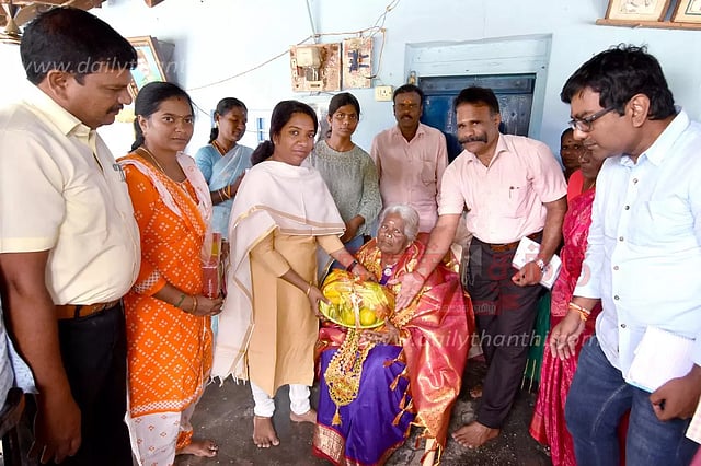 கிருஷ்ணகிரி மாவட்டத்தில் சர்வதேச முதியோர் தின விழா நேற்று கொண்டாடப்பட்டது. இதையொட்டி வேப்பனப்பள்ளி அருகே நாடுவானப்பள்ளி ஊராட்சி ராமச்சந்திரம் கிராமத்தில் 107 வயது நிரம்பிய மூத்த வாக்காளர் முத்தம்மாள் என்பவருக்கு கலெக்டர் சரயு பொன்னாடை அணிவித்து இனிப்பு வழங்கி கவுரவித்தார்.