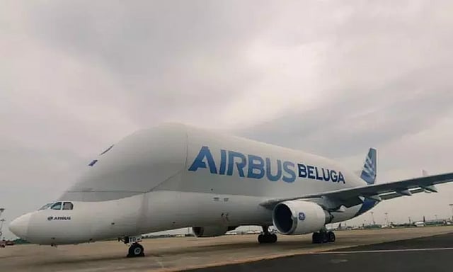 உலகத்திலேயே மிகப் பெரிய சரக்கு விமானமான திமிங்கலம் வடிவிலான, "ஏாபஸ் பெலுகா"என்ற சரக்கு விமானம், சென்னை விமானநிலையத்திற்கு, நேற்று இரவு 9.30 மணிக்கு வந்தது. இந்த விமானம் குஜராத்தில் இருந்து, தாய்லாந்து செல்லும் வழியில், எரிபொருள் நிரப்புவதற்காக சென்னையில் தரையிறங்கி, எரி பொருள் நிரப்பியது.