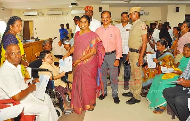 ராணிப்பேட்டை மாவட்ட கலெக்டர் அலுவலகத்தில் மாற்றுத்திறனாளிகளுக்கான அடையாள அட்டை வழங்கும் சிறப்பு மருத்துவ முகாம் நடைபெற்றது. முகாமில் 380 மாற்றுத்திறனாளிகள் கலந்து கொண்டனர். அதில் 247 பேருக்கு மருத்துவ சான்றுடன் கூடிய அடையாள அட்டையை கலெக்டர் வளர்மதி வழங்கினார். எஞ்சியுள்ள 162 பேருக்கு தேசிய அடையாள அட்டை பெறுவதற்கான பதிவும், 30 நபர்களுக்கு முதல்-அமைச்சரின் விரிவான மருத்துவக் காப்பீடு அட்டைக்கான பதிவும் மேற்கொள்ளப்பட்டது.