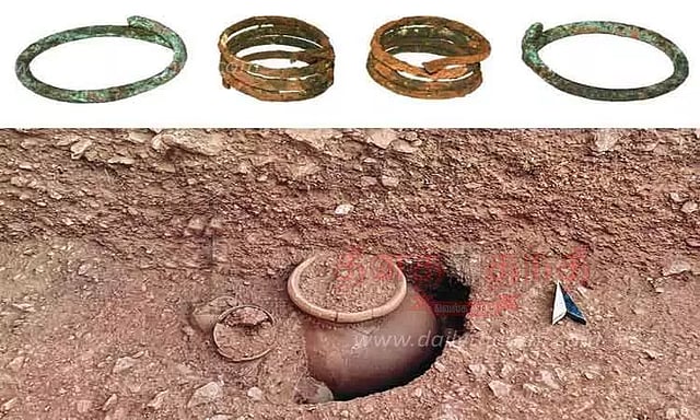 ஆதிச்சநல்லூர் அகழாய்வில் முதல்முறையாக குழந்தைக்கான முதுமக்கள் தாழியில் வெண்கல வளையல்கள் கண்டுபிடிக்கப்பட்டன.