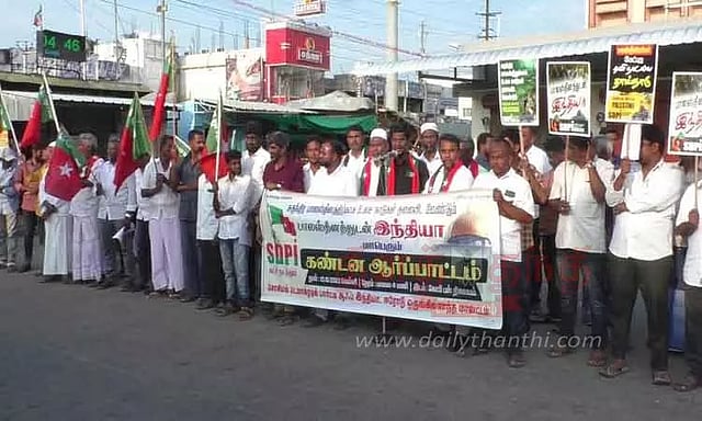 இஸ்ரேலின் அடக்குமுறையையும், ஆக்கிரமிப்பையும் ஐ.நா. தடுக்கவேண்டும். பாலஸ்தீனத்துக்கு ஆதரவாக உலக நாடுகள் தலையிட வேண்டும் என்பன உள்ளிட்ட கோரிக்கைகளை வலியுறுத்தி கோபி பஸ்நிலையத்தில் எஸ்.டி.பி.ஐ. கட்சியினர் சார்பில் ஆர்ப்பாட்டம் நடைபெற்றது. ஆர்ப்பாட்டத்துக்கு எஸ்.டி.பி.ஐ கட்சி நிர்வாகி லுக் மானுல்ஹக்கீம் தலைமை தாங்கினார்.