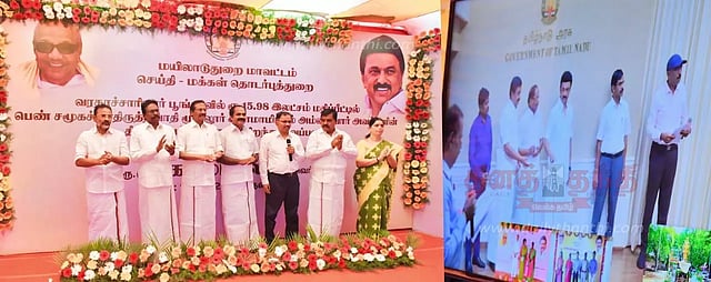 அப்போது மயிலாடுதுறையில் சிலையின் அருகே அமைக்கப்பட்டிருந்த மேடையில் சுற்றுச்சூழல் துறை அமைச்சர் மெய்யநாதன், மாவட்ட கலெக்டர் மகாபாரதி, ராமலிங்கம் எம்.பி., எம்.எல்.ஏ.க்கள் நிவேதா முருகன், பன்னீர்செல்வம் ஆகியோர் கலந்து கொண்டனர்.
