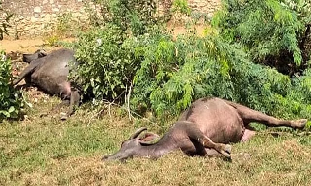 நாசரேத் - வெள்ளரிக்காயூரணியைச் சேர்ந்த மாடசாமி மகன் பூல்பாண்டி (வயது 33). இவர் எடுமை மாடுகள் வளர்த்து வருகிறார். நேற்று பூல்பாண்டி தனது எருமை மாடுகளை பிரகாசபுரம் மறுகால்துறை ஓடையில் மேயவிட்டுள்ளார். அப்போது அந்த பகுதியில் அறுந்து கிடந்த மின் கம்பியை எருமை மாடுகள் மிதித்ததில் மின்சாரம் தாக்கி 3 எருமை மாடுகள் சம்பவ இடத்திலேயே பலியாகின. இது குறித்து பூல்பாண்டி அளித்த புகாரின் பேரில் நாசரேத் போலீஸ் சப்- இன்ஸ்பெக்டர் ராய்ஸ்டன் வழக்கு பதிவு செய்து விசாரித்து வருகிறார்.