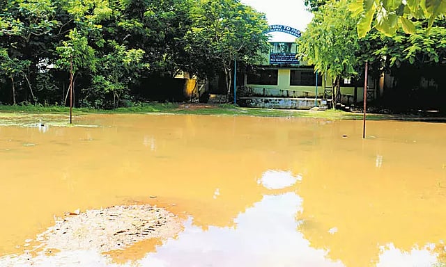 எனவே பள்ளி வளாகத்தில் தேங்கியுள்ள மழை நீரை அகற்ற வேண்டும், பள்ளி வளாகத்தில் தாழ்வான பகுதிகளில் மண் கொட்டி மழைநீர் தேங்காதவாறு நடவடிக்கை எடுக்க வேண்டுமென மாணவர்களின் பெற்றோர்கள் கோரிக்கை வைத்துள்ளனர்.
