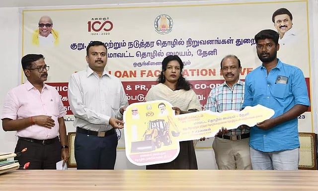 தேனி ஊரக வளர்ச்சி முகமை அலுவலக கூட்டரங்கில், மாவட்ட தொழில் மையம், தமிழ்நாடு தொழில் முதலீட்டு கழகம், தமிழ்நாடு ஆதிதிராவிடர் மற்றும் வீட்டு வசதி மேம்பாட்டுக் கழகம், மகளிர் திட்டம், மாவட்ட பிற்படுத்தப்பட்டோர் மற்றும் சிறுபான்மையினர் நலத்துறை, கூட்டுறவுத்துறை மற்றும் வங்கிகள் ஆகியவை மூலம் செயல்படுத்தப்படும் குறு, சிறு மற்றும் நடுத்தர தொழில் தொடங்குவதற்கான வங்கிக் கடன் வழங்கும் முகாம் நடந்தது. முகாமில் மாவட்ட கலெக்டர் ஷஜீவனா தலைமை தாங்கி, 244 பயனாளிகளுக்கு ரூ.38 கோடியே 44 லட்சம் மதிப்பில் பல்வேறு கடனுதவிகளுக்கான உத்தரவுகளை வழங்கி பேசினார். முன்னதாக, மகளிர் சுய உதவிக்குழு உறுப்பினர்கள் மற்றும் தொழில்முனைவோர்கள் உற்பத்தி செய்த பொருட்களின் கண்காட்சியை கலெக்டர் பார்வையிட்டார். நிகழ்ச்சியில், மாவட்ட தொழில் மைய பொது மேலாளர் அசோகன், முன்னோடி வங்கி மேலாளர் மோகன்குமார் மற்றும் வங்கி மேலாளர்கள் உள்பட பலர் கலந்துகொண்டனர்.