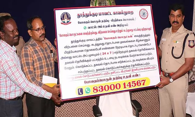 தூத்துக்குடி மாவட்டத்தில் கஞ்சா உள்ளிட்ட போதை பொருட்கள் விற்பனை குறித்து தகவல் தெரிவிக்க பிரத்யோக செல்போன் எண்ணை போலீஸ் சூப்பிரண்டு பாலாஜி சரவணன் வெளியிட்டார்.