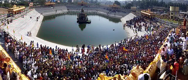 மாலையில் தெப்பக்குளத்திற்கு சிறப்பு பூஜைகள், புண்ணிய தீர்த்தங்கள் கொண்டு தடாக பிரதிஷ்டை செய்யப்பட்டு, அறுகோண தெப்பக்குளம் திறப்பு விழா நடைபெற்றது.