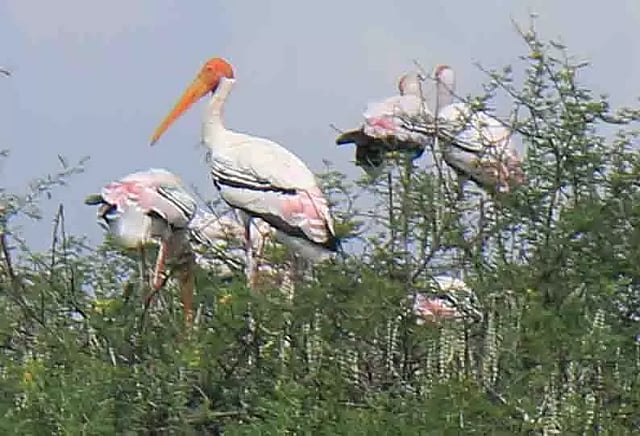 இ்ந்த பறவைகள் ஆண்டு தோறும் ஏழாயிரம் பண்ணை அருகே உள்ள சங்கரபாண்டியாபுரத்தில் உள்ள மரங்களில் மார்ச் மாதக்கடைசியில் தங்கி குஞ்சுகள் பொறித்து பறக்கும் தருவாயில் வந்ததும் தங்களது தாய் நாட்டிற்கு சென்று விடும்.