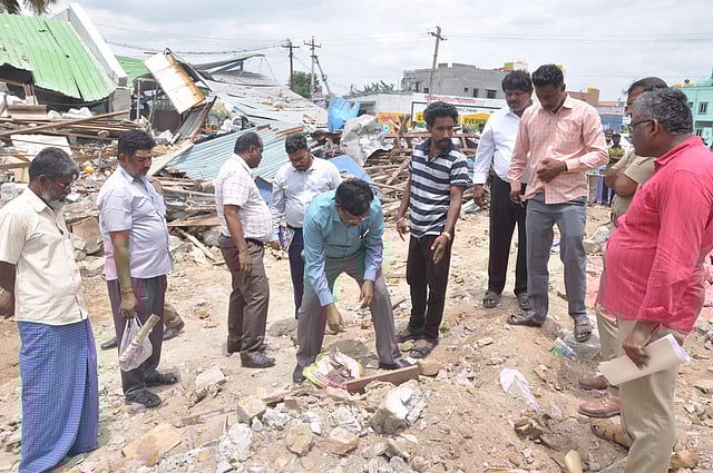 கிருஷ்ணகிரி பழையபேட்டை நேதாஜி சாலையில் இயங்கி வந்த பட்டாசு குடோனில் நேற்று முன்தினம் காலை ஏற்பட்ட வெடி விபத்தில் 6 கடைகள் முற்றிலும் இடிந்து தரைமட்டமானது. மேலும் ஒரு வெல்டிங் கடை, மரக்கடை, இறைச்சி கடை, ஒரு வீடு, குடிநீர் தயாரிக்கும் குடோன் ஆகியவையும் இடிந்து சேதமடைந்தது. இந்த விபத்தில் 9 பேர் உயிரிழந்தனர்.