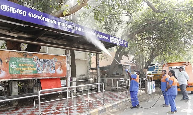இதன் தொடர்ச்சியாக, இன்று காலை 6 மணி முதல் 8 மணி வரை சென்னை மாநகராட்சியின் 1 முதல் 15 வரையிலான அனைத்து மண்டலங்களிலும் உள்ள 1,373 பேருந்து நிறுத்தங்களிலும் தீவிரத் தூய்மைப்பணிகள் மேற்கொள்ளப்பட்டு சுத்தம் செய்யப்பட்டது.