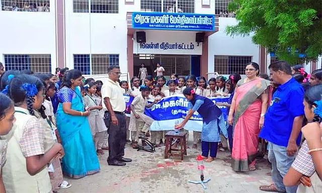 உலக நாடு முழுவதும் விண்வெளி அறிவியலை மக்களிடம் கொண்டு செல்ல அக்டோபர் 4ம் தேதி முதல் 10ம் தேதி வரை சர்வதேச விண்வெளி வார விழா கொண்டாடப்படுகிறது. இதில் கோவில்பட்டி அரசு மகளிர் மேல்நிலைப்பள்ளி மாணவிகள் பாட்டிலில் கால்பங்கு நீர் நிரப்பி காற்றடைத்து மாதிரி ராக்கெட்டை வானில் ஏவி அசத்தினர். மாணவிகள் சர்வதேச விண்வெளி ஆய்வு மைய மாதிரிகளை அட்டையில் உருவாக்கினர்.