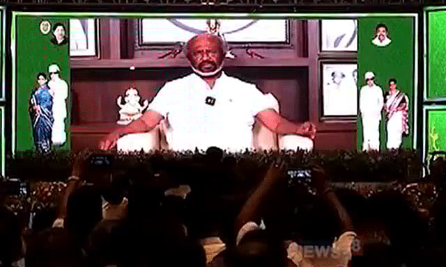 ரஜினிகாந்த்தைத் தொடர்ந்து தே.மு.தி.க. பொதுச்செயலாளர் பிரேமலதா விஜயகாந்த் பேசிய வாழ்த்து வீடியோவும் ஒளிபரப்பப்பட்டது.