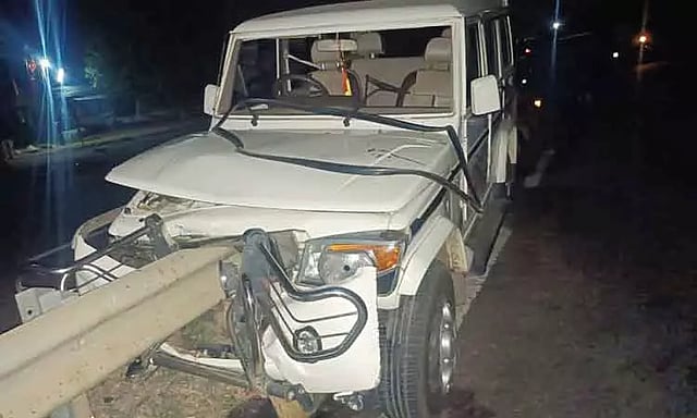 கும்பகோணம் அருகே உள்ள பந்தாநல்லூர் பகுதியைச் சேர்ந்தவர் வடிவேல் (வயது 52). இவர், தனது நண்பர்களான மதிவாணன், பாலமுருகன் ஆகியோருடன் ஒரு காரில் கும்பகோணத்தில் இருந்து திண்டுக்கல் நோக்கி சென்றார். ஜீப்பை மதிவாணன் ஓட்டிச் சென்றார். நேற்று அதிகாலை திருச்சி-திண்டுக்கல் தேசிய நெடுஞ்சாலையில் அய்யலூர் மூக்கரபிள்ளையார் கோவில் அருகே ஜீப் சென்றுகொண்டிருந்தது. அப்போது திடீரென கட்டுப்பாட்டை இழந்த ஜீப் சாலையின் நடுவே இருந்த தடுப்பு கம்பி மீது பயங்கரமாக மோதியது. இதில் வடிவேல், மதிவாணன், பாலமுருகன் ஆகிய 3 பேரும் லேசான காயத்துடன் அதிர்ஷ்டவசமாக உயிர் தப்பினர். அவர்களை அக்கம்பக்கத்தினர் மீட்டு சிகிச்சைக்காக திண்டுக்கல் அரசு ஆஸ்பத்திரியில் சேர்த்தனர். இந்த விபத்து குறித்து வடமதுரை போலீசார் விசாரணை நடத்தி வருகின்றனர்.