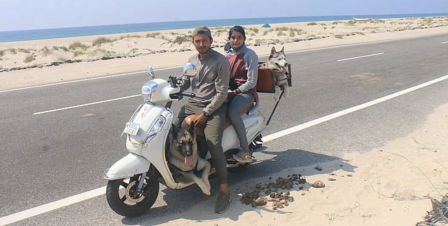 ராமேசுவரம் அருகே உள்ள தனுஷ்கோடி அரிச்சல்முனை பகுதிக்கு மோட்டார் சைக்கிளில் கர்நாடக மாநிலம் பெங்களூருவில் இருந்து அரவிந்த் என்ற இளைஞர் தனது பெண் நண்பருடன் வளர்ப்பு நாய்களுடன் மோட்டார் சைக்கிளில் வந்தார். அவரை சுற்றுலா பயணிகள் மிகுந்த ஆச்சரியத்துடன் பார்த்தனர். இதுகுறித்து அவர் கூறியதாவது:- இந்தியா முழுவதும் உள்ள 12 ஜோதிர் லிங்க கோவில்களுக்கு மோட்டார் சைக்கிளில் சென்று தரிசனம் செய்ய வேண்டும் என்பது நீண்டநாள் ஆசை. இதற்காக கடந்த செப்டம்பர் மாதம் பெங்களூருவில் இருந்து மோட்டார் சைக்கிளில் மகாராஷ்டிரா மாநிலம், மத்திய பிரதேஷ், குஜராத், உத்தரகாண்ட், வாரணாசி பல மாநிலங்களில் உள்ள ஜோதிர்லிங்க கோவில்களுக்கு சென்று தரிசனம் செய்துவிட்டு கடைசியாக ராமேசுவரம் ராமநாத சாமி கோவிலிலும் தரிசனம் செய்ய வந்துள்ளோம். உடன் வளர்ப்பு நாய்களையும் அழைத்து வரவேண்டும் என ஆசைப்பட்டு அழைத்து வந்துள்ளேன். இந்த 3 மாதத்தில் 12 ஜோதிர்லிங்க கோவில்களையும் சேர்த்து சுமார் 11 ஆயிரம் கிலோ மீட்டர் பயணம் செய்துள்ளேன். இவ்வாறு அவர் கூறினார்.