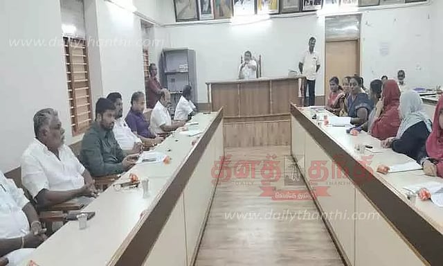 கூட்டம் தொடங்கியதும் அ.தி.மு.க. 3-வது வார்டு கவுன்சிலர் சுபா ராஜேந்திர பிரசாத், "மக்களுக்கு தேவையான அடிப்படை தேவையான கழிவுநீர் ஓடை தூர்வாருதல், தெருவிளக்கு, சாலை வசதி, குடிநீர் பிரச்சினைகள் போன்ற பணிகளுக்கு மட்டும் முன்னுரிமை அடிப்படையில் தீர்மானமாக கொண்டு வர வேண்டும். நகராட்சி பொறியியல் பிரிவு ஊழியர்களுக்கு தனி அறை கட்டும் தீர்மானத்தை கைவிட வேண்டும்" என்றார்.
